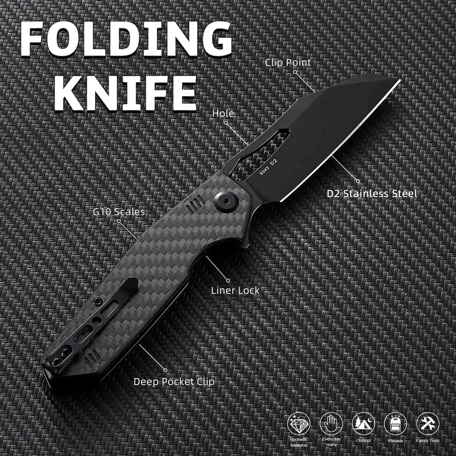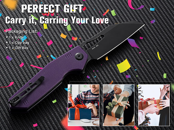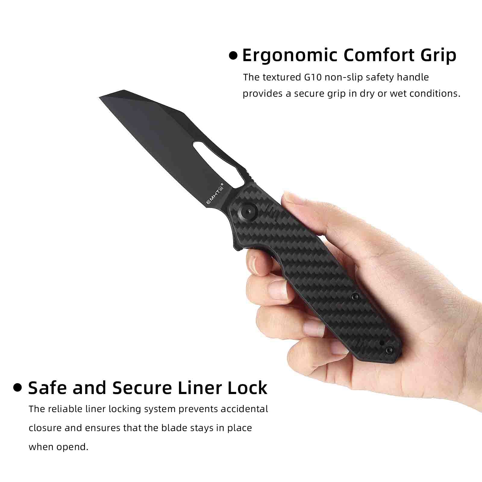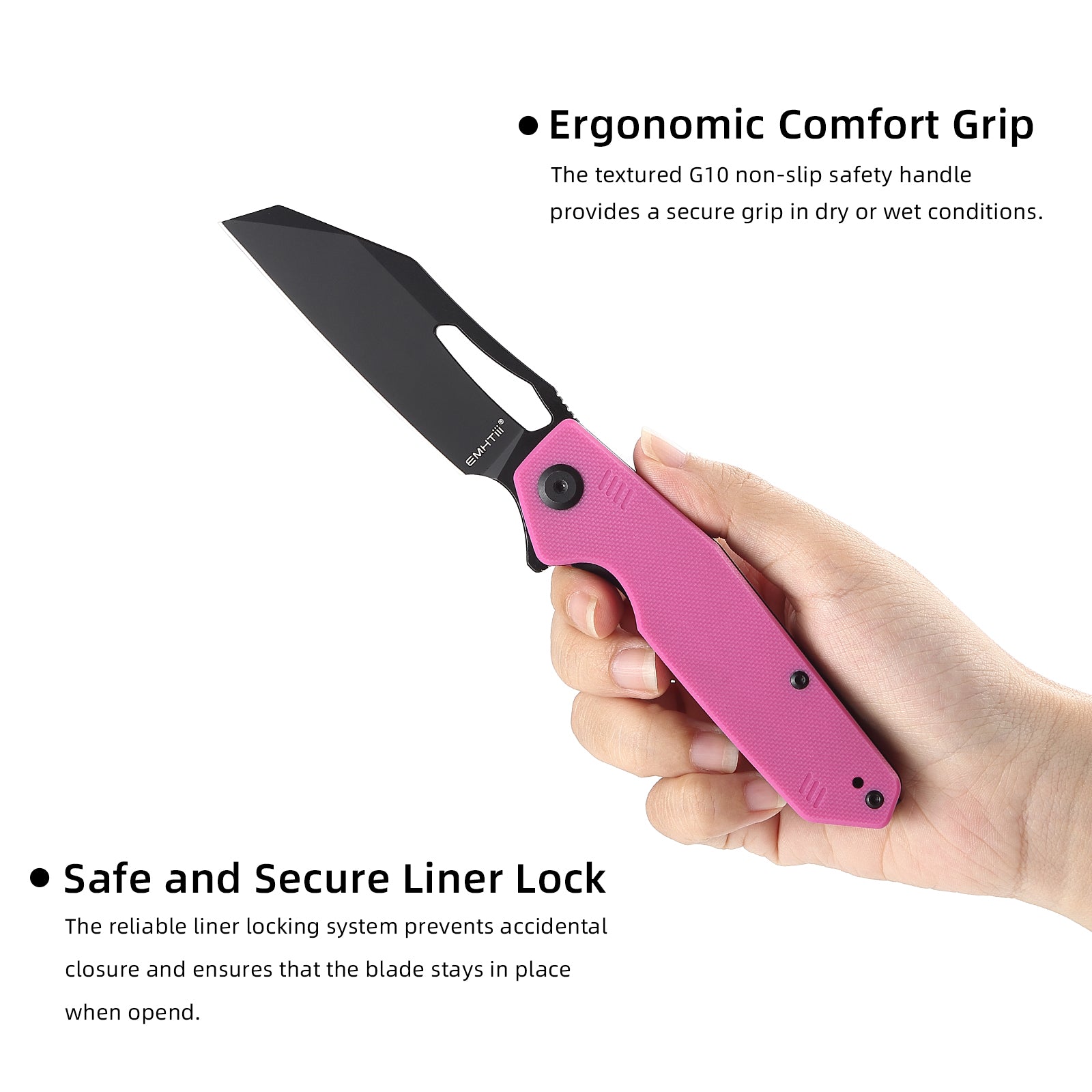 EMHTiii-043 Pocket Knife FOLDING,various colors availableD2 Steel Black Sheepsfoot Blade,Thumb Hole,FlipperG10/CF Scales:PINK,PURPLE,BLCK,etcFlipper Liner Lock, Reversible ClipEDC Gifts for Men Women... Read more