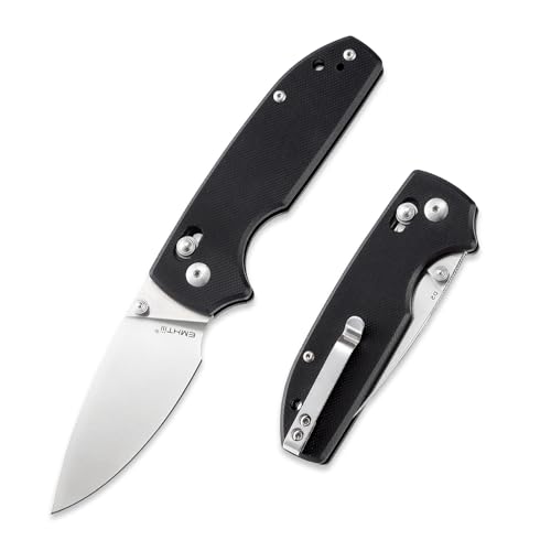 Folding Pocket Knife with Reversible Clip: 3.14" D2 Steel Black Drop Point Blade, Crossbar Axis Lock, G10 Handle Scales
