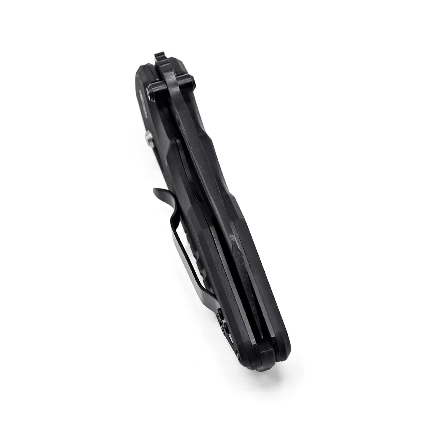 Pocket clip, fixed on the handle with screws, will not fall off, elastic, the handle has option to switch the pocket clip to either side of of the handle for both the left and right hand users.