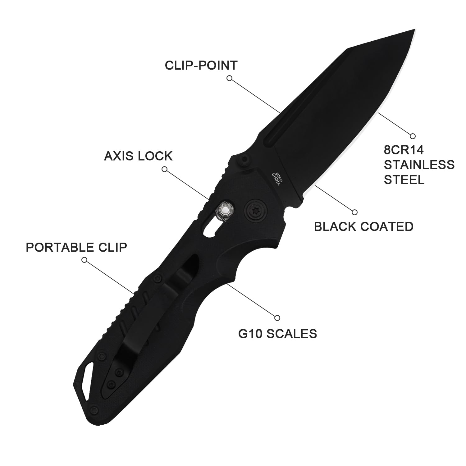 Pocket knife is equipped with a safe and reliable axis lock,can fix the blade stably when opened.Equipped with the thumb studs for right and left hand opening. This small cool foldable pocket knife is best for hiking, fishing, travel, survival, climbing, biking, EDC, work, self defense, rescue.