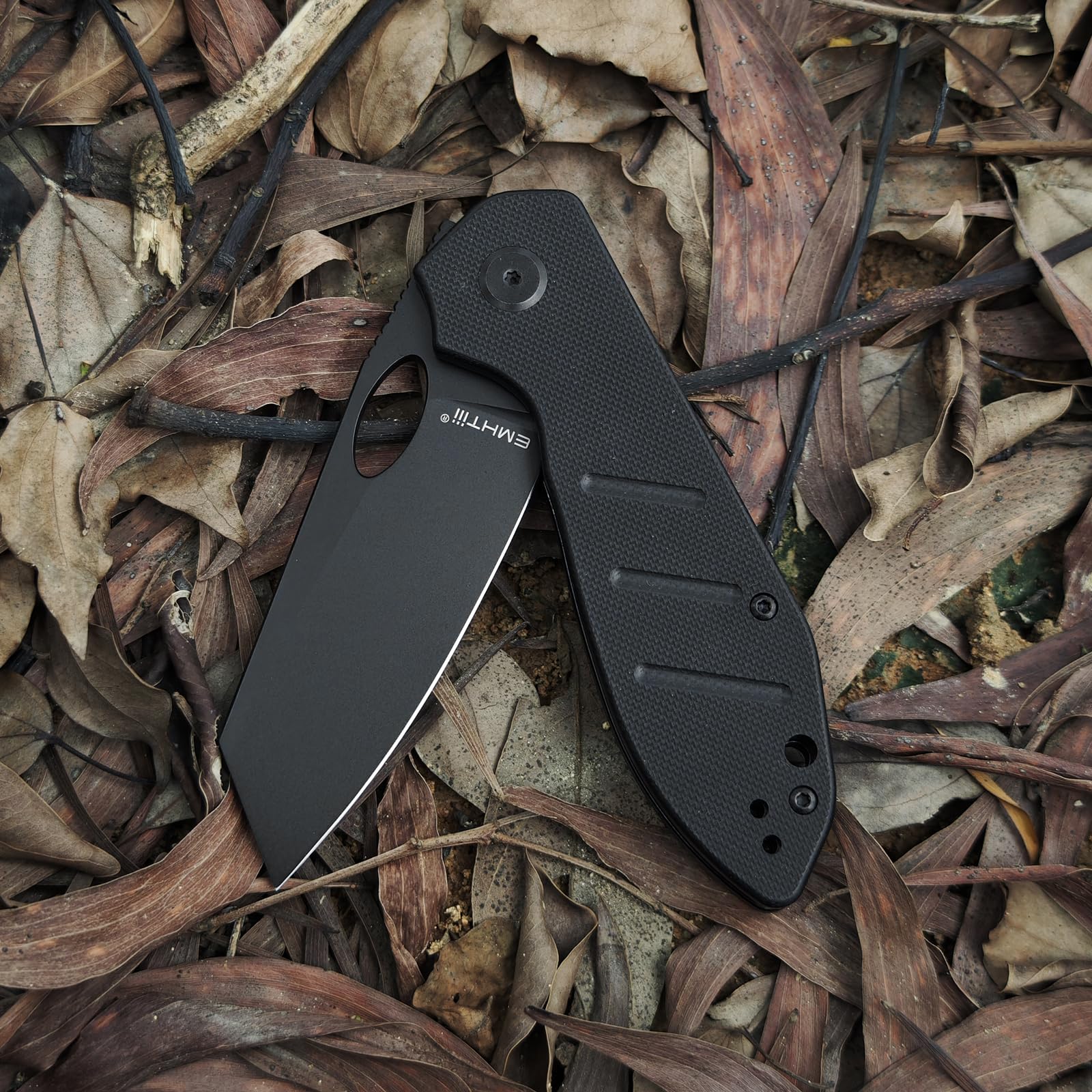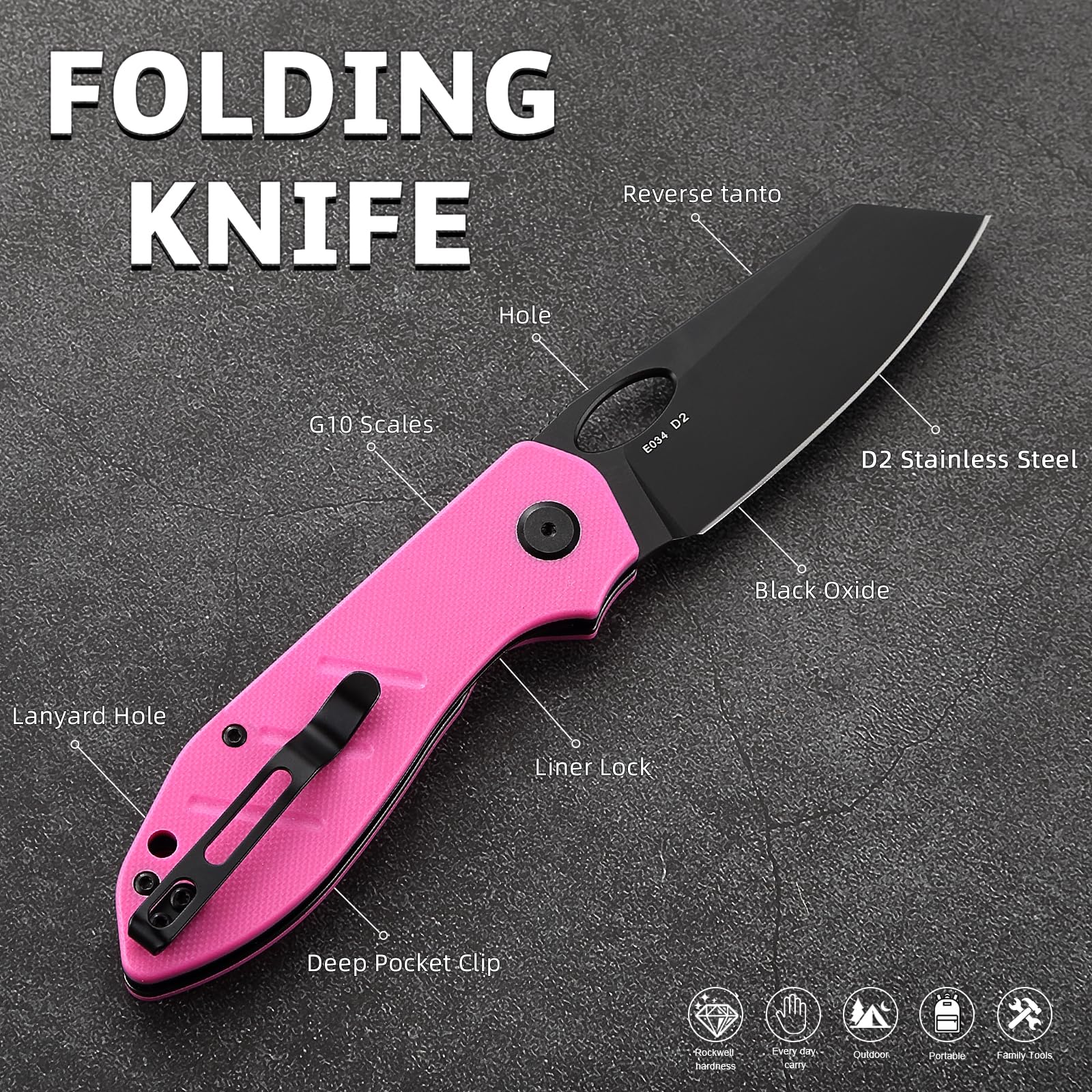 Reverse Tanto Pocket Folding Knife: D2 Steel Black Blade, EDC Tactical Camping Knives, E034